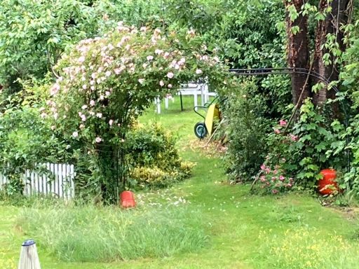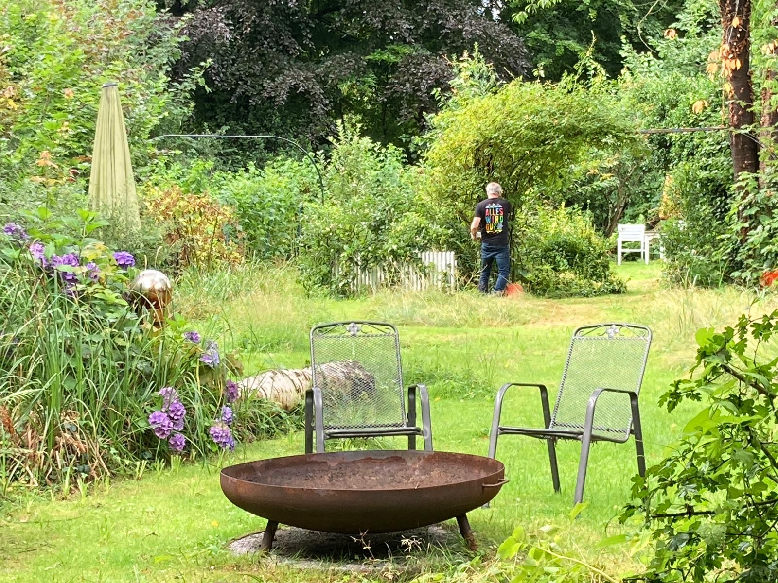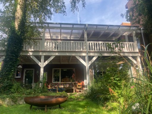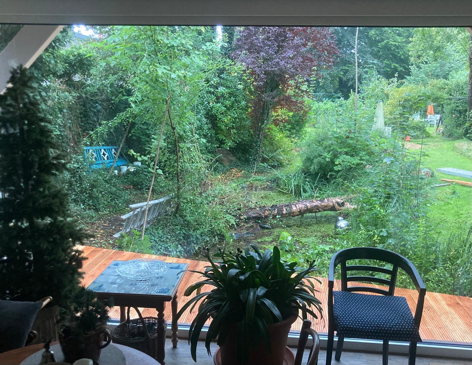 Unsere Ferienwohnung bietet bis zu vier müden Häuptern in zwei Schlafräumen in zwei Bettstätten vier bis sechs feine Schlafplätze. Im kleinen separaten Schlafraum mit Gartenblick wäre mit 1,40 m x 2,20 m Platz für zwei Personen. Im großen Wohnraum mit Schreib- und Stubentisch, Sofa und Ohrensessel auf 1,60 m x 4,10 m Platz für bis zu vier Ruhewillige. Dazu gibt es einen wandbreiten Fernseher für gemütliche Filmabende und ein Duschbad mit angrenzender Kleider- und Kofferkammer.