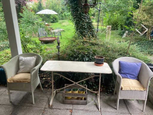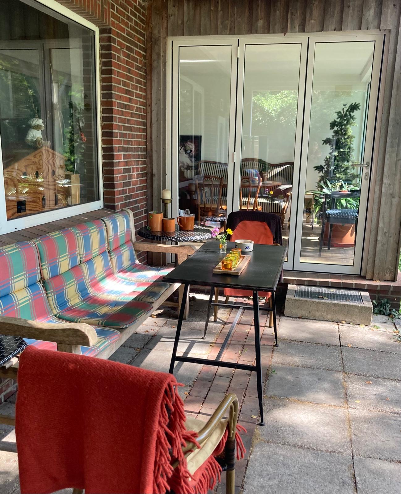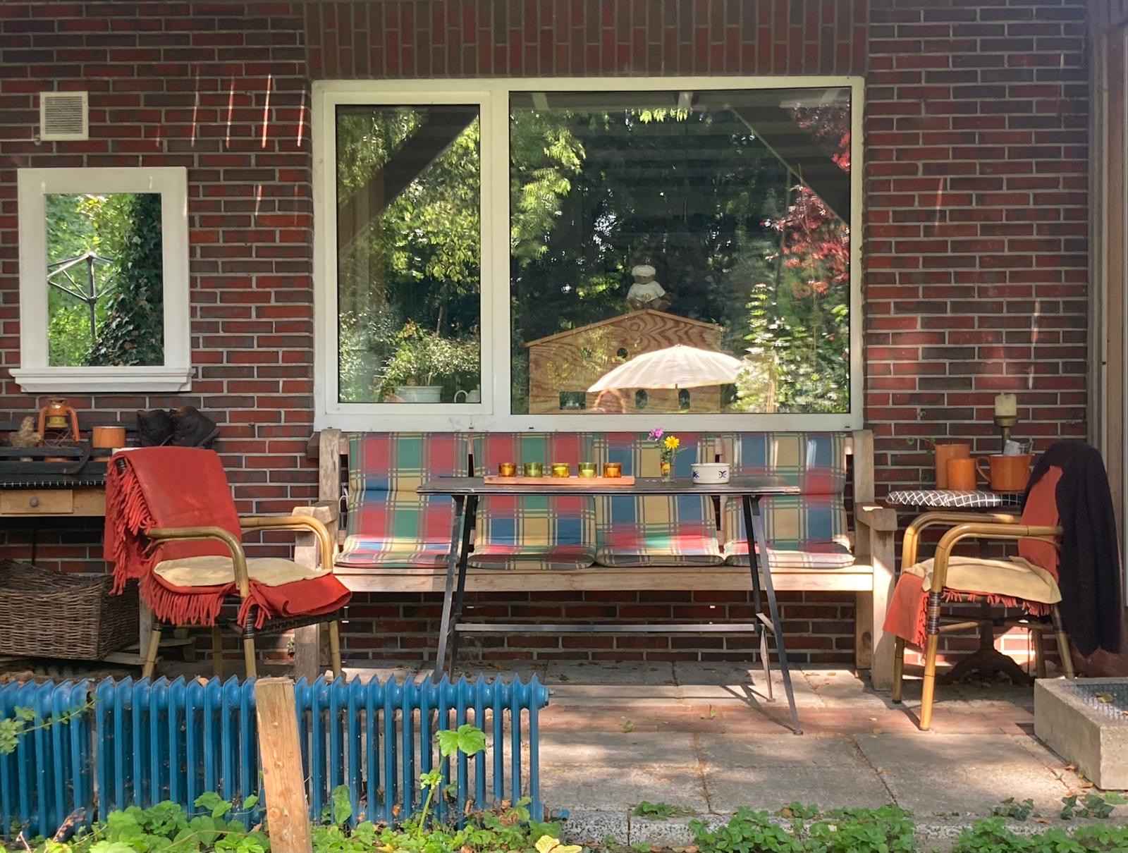 Nehmt euer Frühstück im nostalgisch angehauchten Esszimmer gleich neben der Küche oder bei Sonnenschein auf der zum Garten hin ausgerichteten Terrasse.